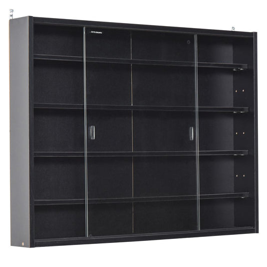 Black 5-Tier Wall Display Shelf Unit Cabinet with Glass Doors