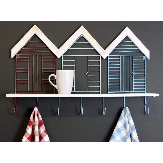 Sold outBeach Hut Wall Shelf with 7 Hooks