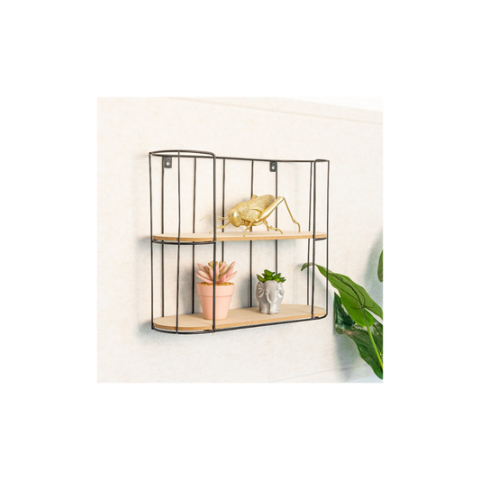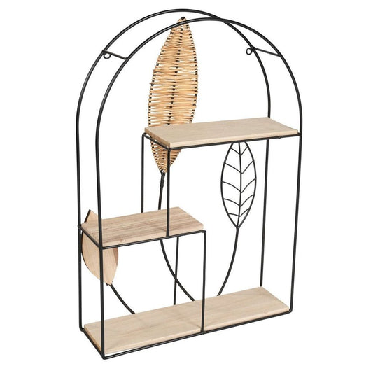 Arched Metal Framed 3 tier Rattan Leaf Shelf Unit
