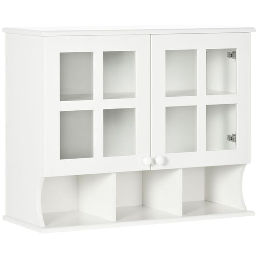 White Wall-Mounted Bathroom Cabinet w/ Storage Shelf for Living Room