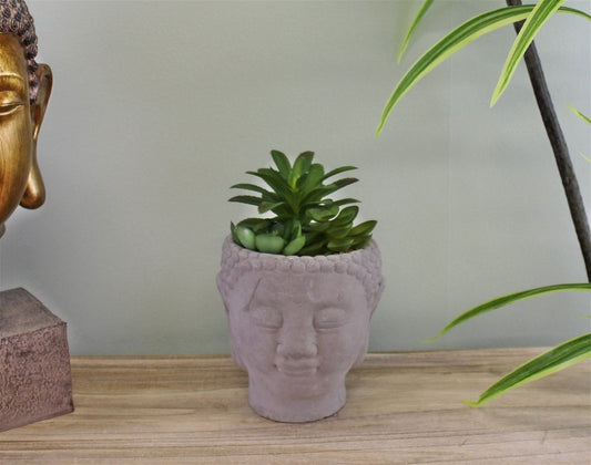 Trio of Faux Succulents in Buddha Head Plant Pot